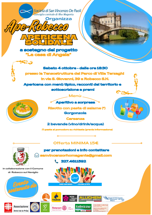 Il 4 ottobre dalle 18:30, la San Vincenzo De Paoli Consiglio Centrale Rho Magenta Conferenza di Abbiategrasso vi aspetta a Robecco Sul Naviglio per un Ape-Ricena solidale. Nella splendida cornice…