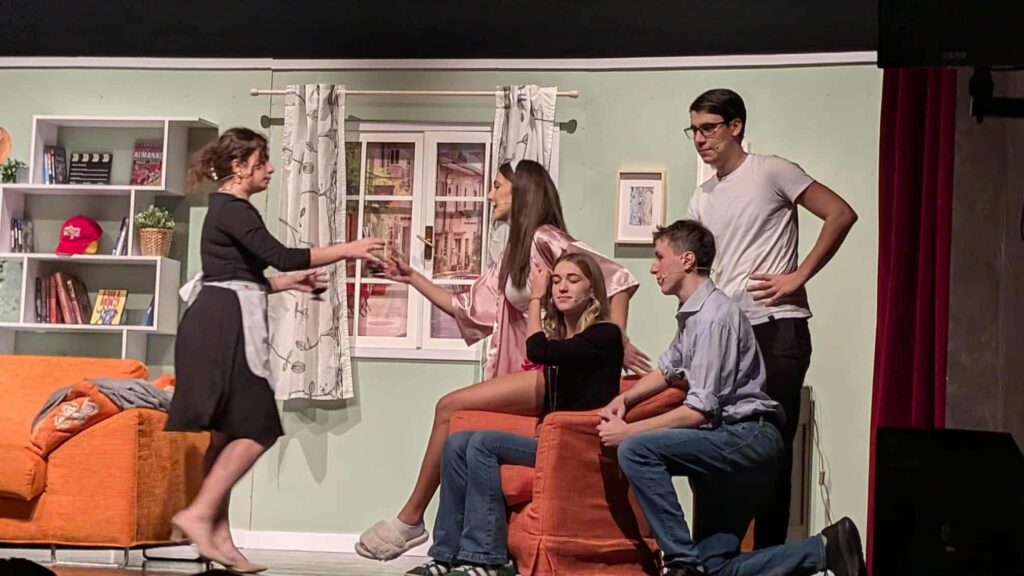E allora sorge spontanea una domanda: qual è la realtà vera? Quella in cui tutto sembra andare storto o quella in cui ogni cosa trova magicamente il suo posto? E soprattutto, quale delle due è davvero migliore? Lo spettacolo gioca su questo confine sottile, lasciando al pubblico il compito di interrogarsi sul valore delle difficoltà che tutti incontriamo nel percorso quotidiano della nostra vita. Tra mille difficoltà, alti e bassi, sogni che sono destinati a rimanere tali e speranze svanite. A chiudere la serata, un monologo, che apre un’ulteriore riflessione: spesso si dice che i ragazzi siano “assenti”. Ma lo sono davvero? O siamo noi adulti a non saperli ascoltare, a preferire risposte di comodo piuttosto che metterci davvero in dialogo con loro? Una domanda che risuona potente, soprattutto in una serata dove sono proprio i giovani a far riflettere gli adulti. L’evento ha avuto anche un forte valore sociale: l’intero ricavato è stato devoluto ai progetti della San Vincenzo “La Casa di Angela” e “Fuoriclasse”, confermando come il teatro possa essere non solo intrattenimento e cultura, ma anche strumento di solidarietà concreta.